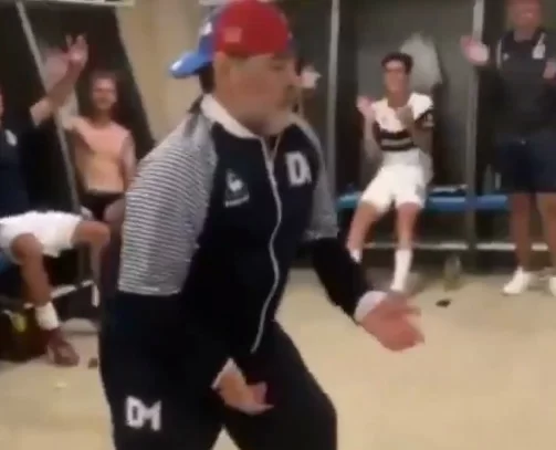 Diego Armando Maradona, dopo la vittoria del suo Gimansia La Plata contro l’Aldosivi per 3 a 0, ha festeggiato nello spogliatoio scatenandosi con delle mosse di danza.