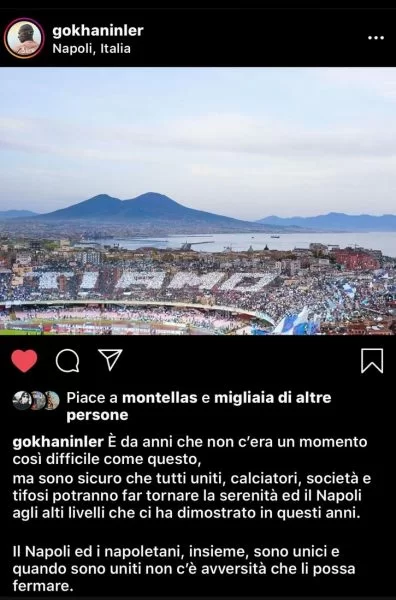ULTIME NOTIZIE CALCIO NAPOLI – Da quando è andato via da Napoli, Gokhan Inler, in ogni occasione possibile ha manifestato tutto il suo amore per la maglia azzurra e per la città. Anche stavolta, l’ex centrocampista azzurro, tramite il suo profilo Instagram ha mandato il suo messaggio d’amore verso i colori azzurri: