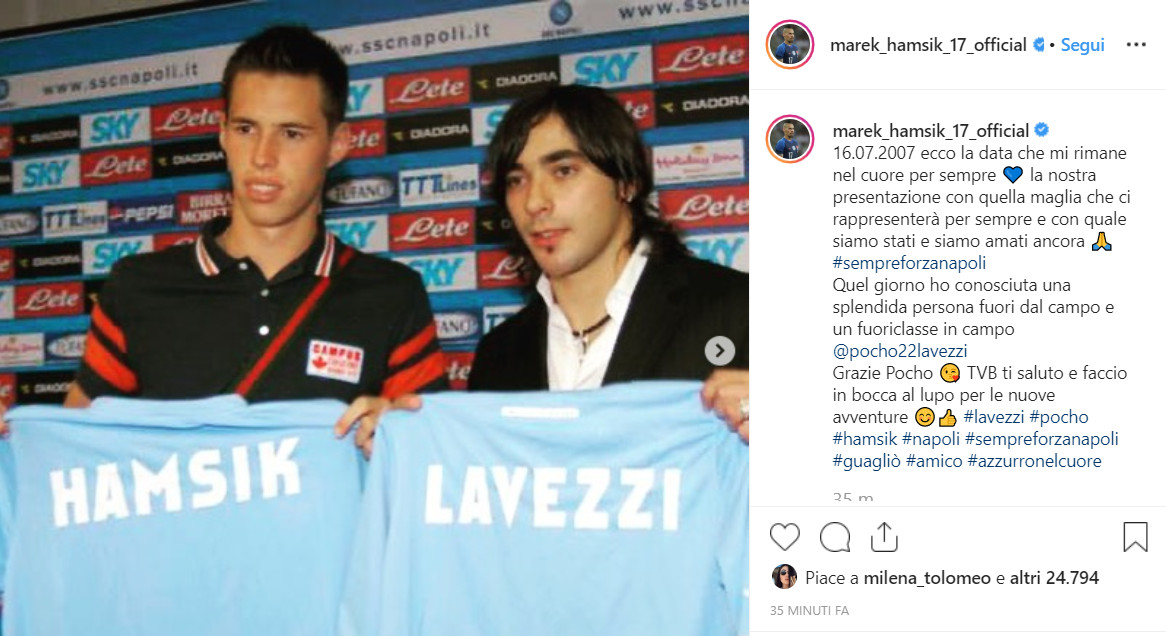 Parole bellissime di Marek Hamsik, per il suo compagno di avventure Lavezzi. Ecco cosa ha scritto sul suo profilo InstagraM: