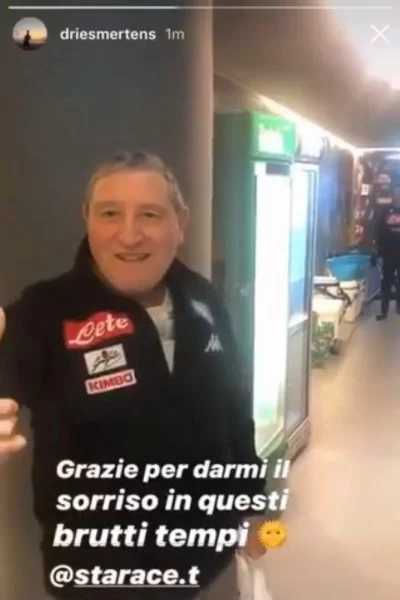 Nelle immagini che ritraggono Starace nel video di Mertens, l’attaccante azzurro rilascia una didascalia abbastanza curiosa che probabilmente si rifà anche al periodo che sta vivendo il Napoli: “Grazie per darmi il sorriso in questi brutti tempi”.