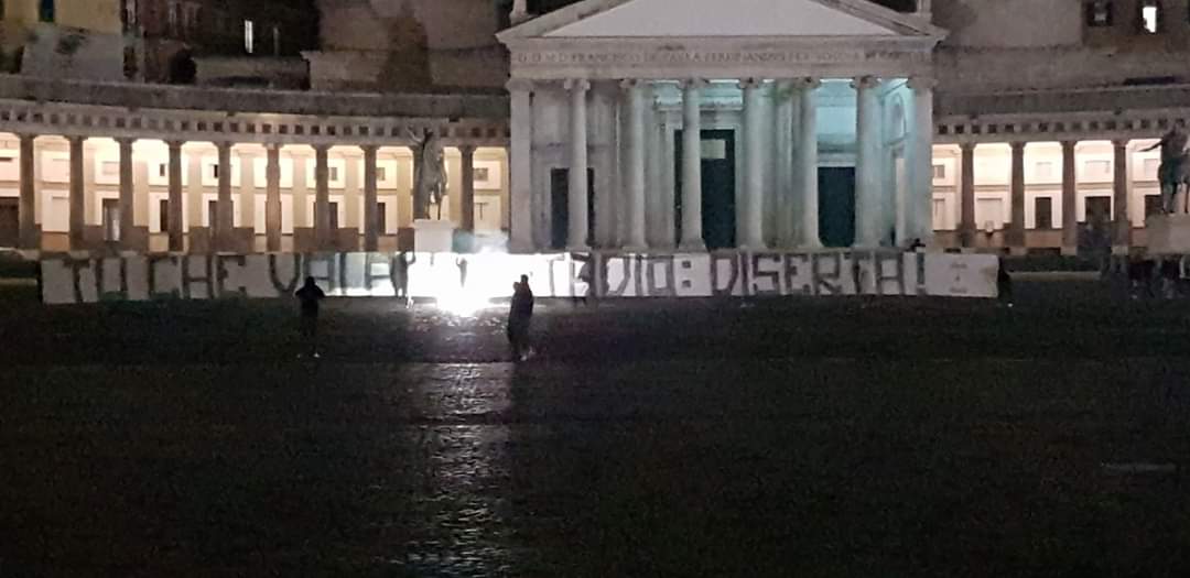 E a quanto pare, in serata la tifoseria più accesa ha deciso di agire, con una nuova protesta condita da alcuni cartelloni tipici, che citano: “Tu che vai allo stadio: Diserta!”