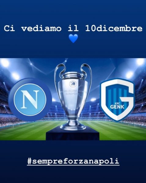 Il numero 17, martedì tornerà al San Paolo Genk per la seconda volta in questa stagione sempre in Champions dopo aver assistito alla gara contro il Salisburgo. L’annuncio è arrivato tramite il profilo Instagram:
