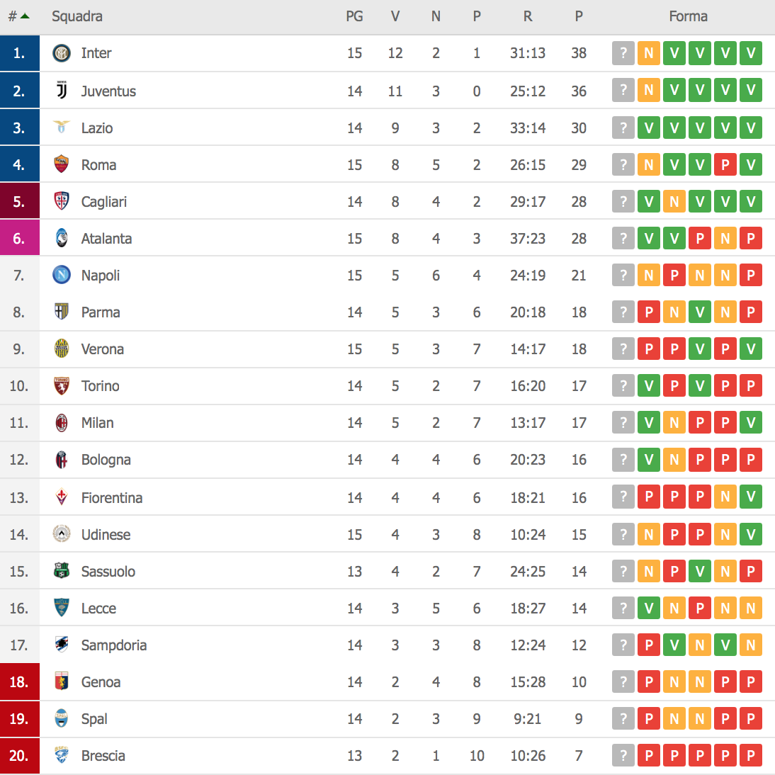 LA CLASSIFICA: