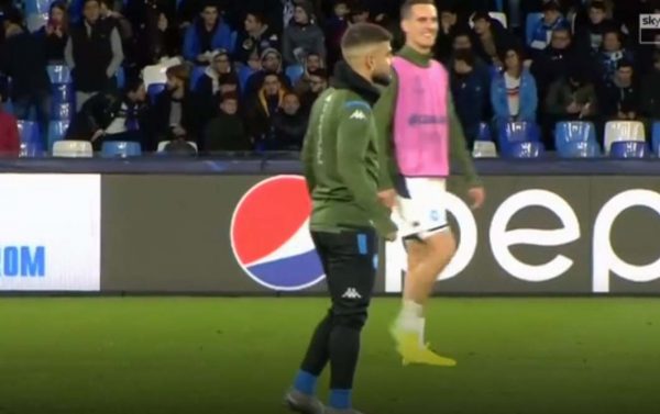 A quanto pare Lorenzo Insigne, nonostante parta dalla panchina, pare stia dando una mano ai compagni impegnati nel riscaldamento e che tra poco scenderanno in campo.