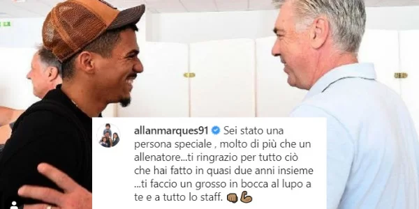 ULTIME NOTIZIE CALCIO NAPOLI – L’esonero di Carlo Ancelotti ha scatenato le prime reazioni in casa Napoli. Dopo il saluto di ieri sera, oggi è arrivato anche quello di Allan. Il centrocampista brasiliano ha voluto salutare tramite il proprio account Instagram l’allenatore uscente: