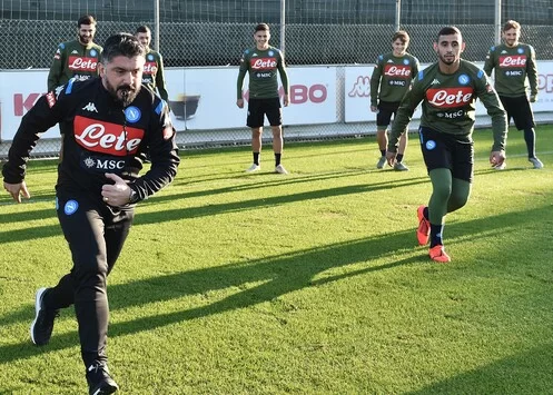 Primo allenamento condotto del nuovo tecnico Gennaro Gattuso. La squadra si è divisa in due gruppi. Coloro che sono andati in campo in Champions contro il Genk hanno svolto lavoro di scarico.