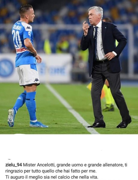“Mister Ancelotti grande uomo e grande allenatore, ti ringrazio per tutto quello che hai fatto per me. Ti auguro il meglio sia nel calcio che nella vita“.