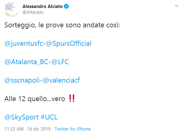 Il collega Alessandro Alciato, inviato a Nyon, ha svelato la simulazione delle combinazioni di Champions avvenuta pochi minuti fa, in attesa i risultati reali.