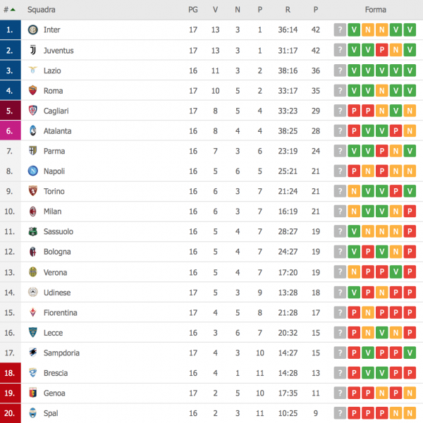 LA CASSIFICA AGGIORNATA:
