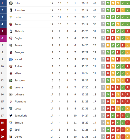 CLASSIFICA SERIE A – Super Atalanta che travolge il Milan a Bergamo con una vittoria schiacciante per 5-0. Una batosta assurda per i rossoneri che restano ancorati nella seconda metà della classifica della Serie A. Il Parma, invece, dopo aver vinto al San Paolo nel turno scorso, ha pareggiato all’Ennio Tardini contro il Brescia, 1-1. Bene il Bologna che vince a Lecce 3-2.