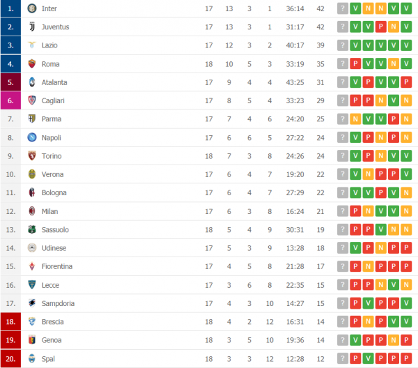 Nelle gare di giornata invece, la Lazio vince in rimonta contro il Brescia grazie al solito Ciro Immobile nei minuti di recupero, alle 15:00 il Verona si impone sulla Spal per 2-0.