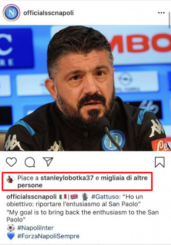 Intanto, arrivano altri indizi sul suo futuro: ha messo un like su Instagram alla pagina del Napoli. Il like, però, è scomparso poco dopo, malgrado ne resti traccia in alcuni screen.