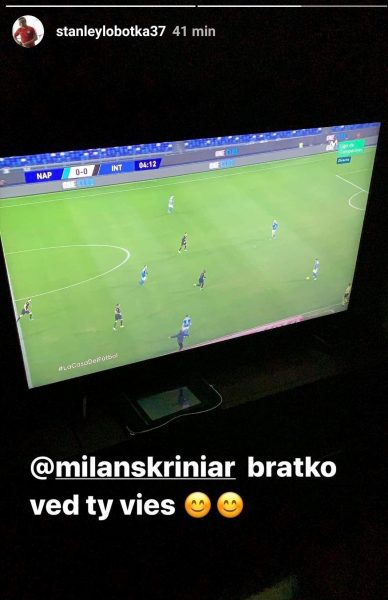 Napoli-Inter sta appassionando proprio tutti, anche gli obiettivi di mercato del Napoli. Lobotka ha da poco pubblicato una storia sul suo profilo Instagram in cui inquadra la tv sintonizzata proprio sulla partita del San Paolo. Che si stia preparando all’approdo in azzurro?