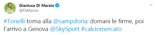 CALCIOMERCATO NAPOLI – In seguito all’accordo non trovato con Kjaer, la Sampdoria ha acquistato di fatti Lorenzo Tonelli, mancano solo le firme e poi il difensore andrà a Genova. A comunicarlo è Gianluca Di Marzio su Twitter.