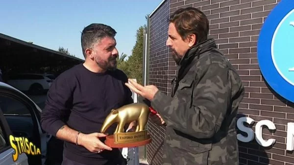 Il momento no del Napoli non è passato inosservato. Anche i programmi televisivi generalisti parlano delle difficoltà degli azzurri, e in particolare pare se ne sia occupato Striscia La Notizia di Canale 5. L’inviato Valerio Staffelli ha raggiunto l’allenatore azzurro, Gennaro Gattuso, per la consegna del celebre Tapiro d’Oro.