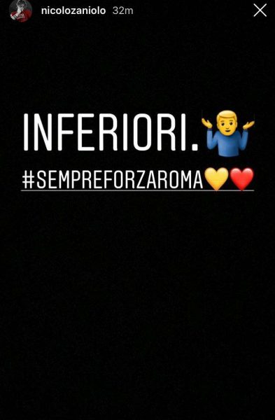 Brutto episodio nel corso di Lazio-Sampdoria. I tifosi biancocelesti hanno ironizzato infatti nei confronti di Zaniolo, infortunatosi domenica scorsa durante Roma-Juventus. “Zaniolo salta con noi”, è stato il coro lanciato dai sostenitori biancocelesti all’Olimpico. La risposta del calciatore non si è fatta attendere: “Inferiori”, ha scritto in una storia su Instagram come bordata ai tifosi laziali.