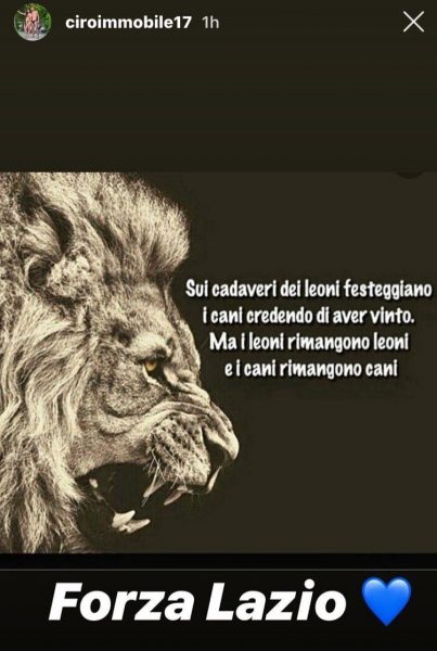 Secondo quanto riportato da Il Messaggero, Ciro Immobile avrebbe pubblicato una storia Instagram nel post Napoli-Lazio in cui citava la seguente frase: