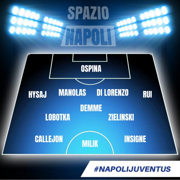 Sarà confermato Ospina tra i pali, per la quinta partita consecutiva. Le scelte in difesa sono le stesse della sfida con la Lazio, la linea sarà quindi formata da Hysaj, Manolas, Di Lorenzo e Mario Rui. L’unico dubbio riguarda il ballottaggio tra Hysaj e Luperto, con l’inserimento dell’italiano, Di Lorenzo si sposterebbe sulla fascia. A centrocampo sicuri del posto Demme e Zielinski, mentre si rinnova il ballottaggio tra Lobotka e Fabian Ruiz. In attacco l’unico dubbio è legato alla fascia destra, con Lozano che prova ad insediare Callejon per una maglia da titolare. Gli altri due posti sono riservati a Milik ed Insigne.