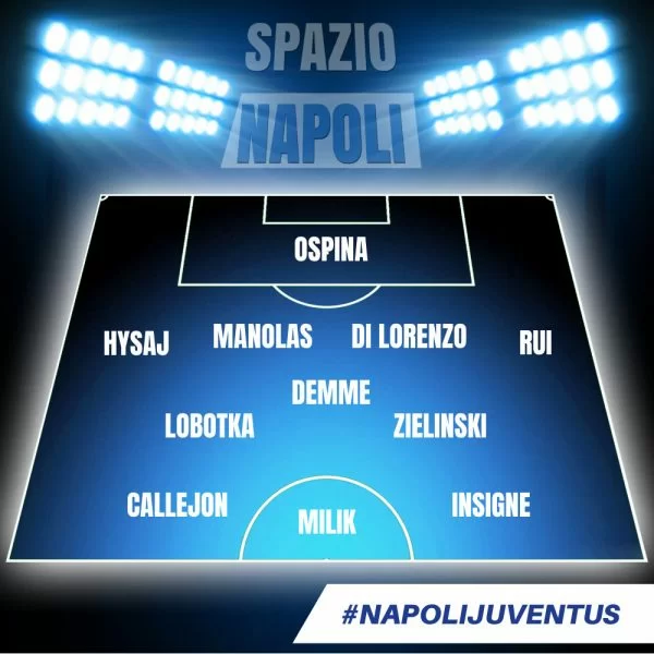 Sarà confermato Ospina tra i pali, per la quinta partita consecutiva. Le scelte in difesa sono le stesse della sfida con la Lazio, la linea sarà quindi formata da Hysaj, Manolas, Di Lorenzo e Mario Rui. L’unico dubbio riguarda il ballottaggio tra Hysaj e Luperto, con l’inserimento dell’italiano, Di Lorenzo si sposterebbe sulla fascia. A centrocampo sicuri del posto Demme e Zielinski, mentre si rinnova il ballottaggio tra Lobotka e Fabian Ruiz. In attacco l’unico dubbio è legato alla fascia destra, con Lozano che prova ad insediare Callejon per una maglia da titolare. Gli altri due posti sono riservati a Milik ed Insigne.