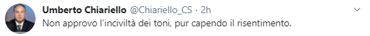 Questi gesti non sono di suo gradimento, commentando tramite Twitter: ” Non approvo l’inciviltà dei toni, pur capendo il risentimento”.