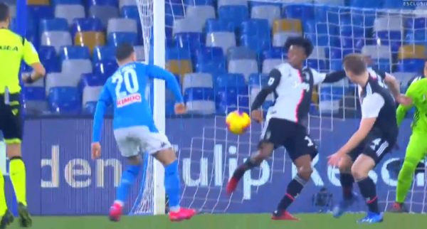 Sul tiro di Zielinski, “Cuadrado è troppo vicino e il braccio è attaccato al corpo”. Sul gol del vantaggio del Napoli, la posizione del centrocampista azzurro è regolare