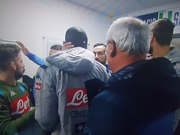 Bellissime immagini nel tunnel del Luigi Ferraris con Lorenzo Tonelli, Quagliarella e Gabbiadini a salutare tutti i calciatori azzurri.