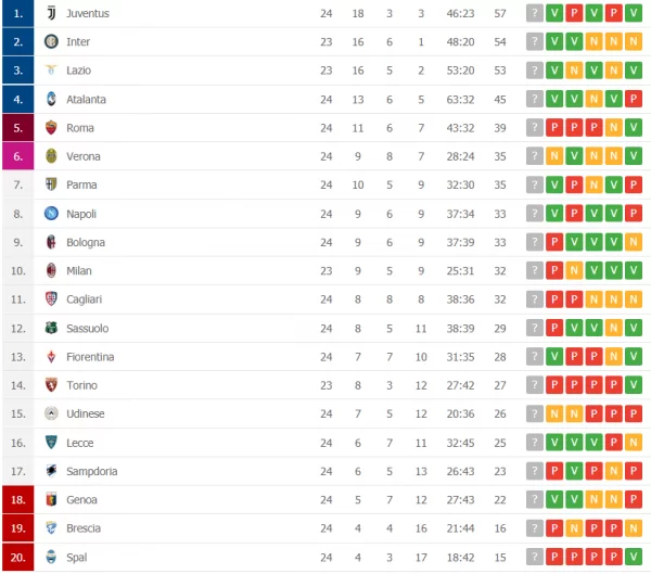 Il Cagliari invece sembra non saper vincere più, 32 i punti in classifica e quindi scavalcati dai partenopei.
