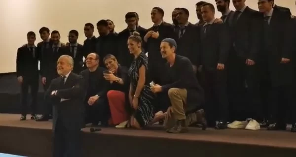 21.11 – De Laurentiis ha preso la parola, dopo le belle parole di Rocco Papaleo sulla città di Napoli. Sul palco è stato invitato Gattuso, il quale si è profuso in un abbraccio con il presidente De Laurentiis. Foto, risate e siparietti anche per gli azzurri. Anna Foglietta ha lanciato un’ovazione per Gattuso. Il video: