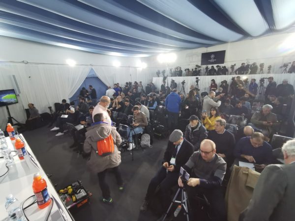 NEWS CALCIO NAPOLI – Curiosa novità oggi allo stadio San Paolo. In occasione del match di Champions League con il Barcellona, infatti, la sala stampa dello stadio è stata allestita con teli e luci, in modo da rendere più confortevole il lavoro per i giornalisti presenti.
