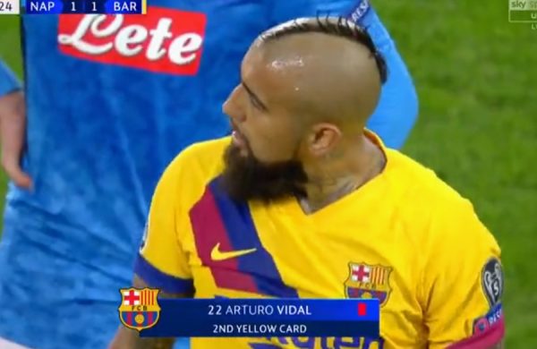 Barcellona-Napoli è oramai ai minuti finali e al momento vede la sfida in pareggio sull’1-1. La squadra blaugrana al momento è in 10 in seguito all’espulsione di Vidal, scontratosi con Mario Rui sul campo prima e in un confronto poi, costato ad entrambi l’ammonizione.