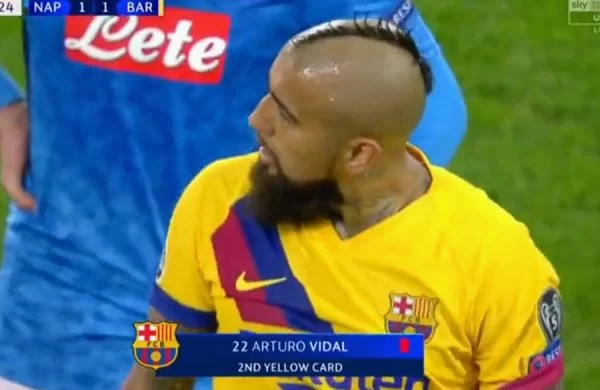 Vidal, in particolare, ha rimediato una doppia ammonizione seguita da un’espulsione. All’uscita dal campo è stato subissato dai fischi dei supporters azzurri. Il calciatore ha ricambiato con un gesto di sfida lanciando uno sguardo verso le tribune.
