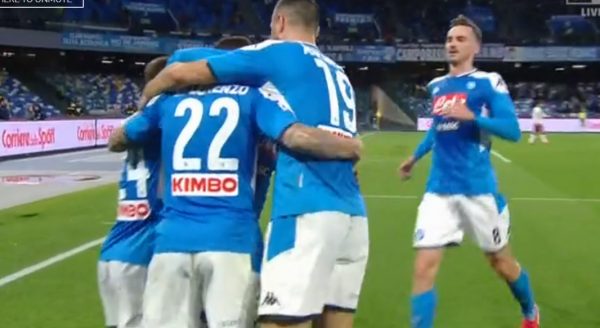 HIGHLIGHTS NAPOLI TORINO – Una partita intensa sin dal riscaldamento, poi sul campo quando gli azzurri passano in vantaggio al 19′ con una bella rete di Manolas, sopraggiunta grazie ad una punizione di Insigne. Nel secondo tempo raddoppia Di Lorenzo, dedicando il gol alla sua compagna incinta. Insidie nel finale quando il Torino prova ad accorciare le distanze grazie ad una rete di Edera nei minuti di recupero della ripresa. Brividi per gli azzurri, ma i 3 punti sono assicurati.