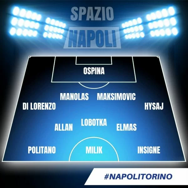 NAPOLI (4-3-3): Ospina; Di Lorenzo, Manolas, Maksimovic, Hysaj; Allan, Lobotka, Elmas; Politano, Milik, Insigne (C).
