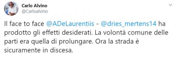 ULTIME NOTIZIE CALCIO NAPOLI – Carlo Alvino, collega di Tv Luna, tramite il proprio profilo Twitter ha parlato del possibile rinnovo di Dries Mertens con il Napoli: