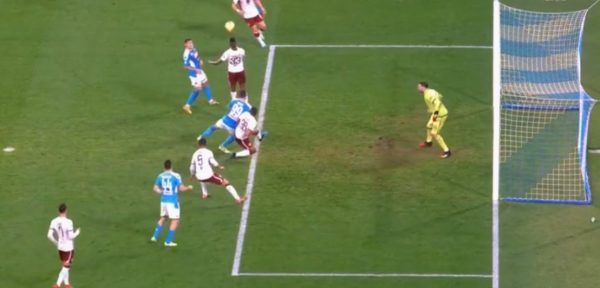 Nel primo tempo c’è un contatto fra Milik e Bremer, il primo in vantaggio sul secondo che gli è dietro le spalle. L’arbitro punisce lo sfondamento dell’azzurro, ma ci può stare. Molto più chiara la seconda situazione: Izzo si calcia il pallone sul braccio sinistro, che sembra ritrarsi al petto. Giusta la decisione del fischietto, non ci sono gli estremi della punibilità.