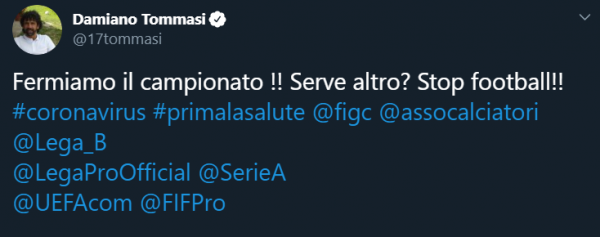 “Fermiamo il campionato !! Serve altro? Stop football!”
