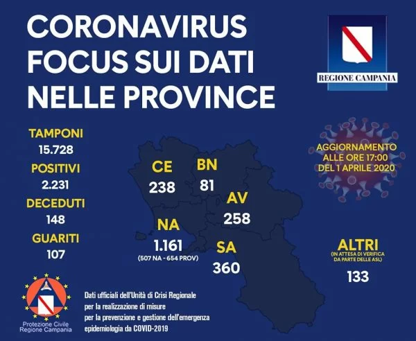 Provincia di Napoli: 1.161 (di cui 507 Napoli Città e 654 Napoli provincia)