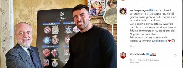 «Non vedo l’ora. Piazza fantastica, tifo straordinario, un top club. Arriverò per restare. Mi ricordo quando il mio manager Giuseppe Riso mi ha chiamato, mancava poco all’allenamento: ho ancora lo screenshot di lui mentre mi dà la notizia. Gattuso? Lo conobbi a Milanello, mi piace come allena e caratterialmente. Mi avrebbe preso anche a gennaio ma ho scelto di restare alla Spal: mi ha dato tanto e la devo ringraziare. E salvare».