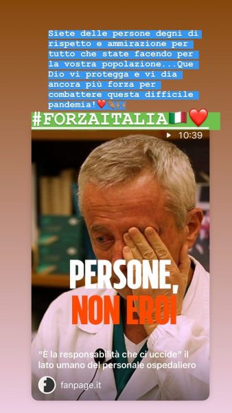 “Siete delle persone degne di rispetto ed ammirazione per tutto ciò che state facendo per la vostra popolazione. Che Dio vi protegga e vi dia ancora più forza per combattere questa difficile Pandemia”.