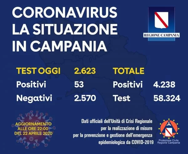 L’Unità di Crisi della Regione Campania comunica che sono pervenuti i seguenti dati in merito ai test effettuati oggi.