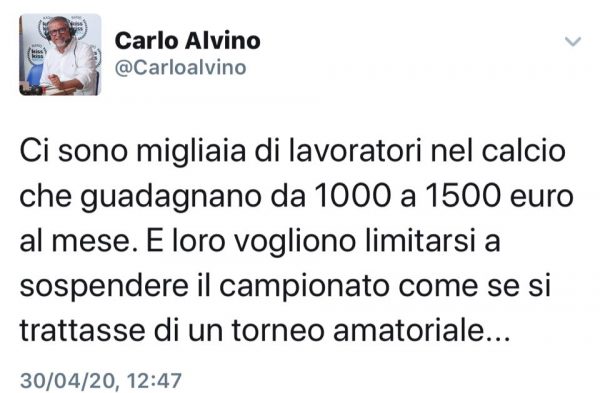 “Ci sono migliaia di lavoratori nel calcio che guadagnano da 1000 a 1500 euro al mese. E loro vogliono limitarsi a sospendere il campionato come se si trattasse di un torneo amatoriale…”