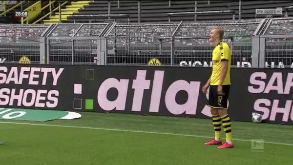 Il primo gol alla ripresa del grande calcio l’ha messo a segno il Borussia Dortmund nel derby contro lo Schalke 04. L’azione è stata bellissima con Brandt che con un tocco di tacco ha mandato in profondità sulla destra Thorgan Hazard, fratello di Eden del Real Madrid, che ha servito un preciso cross tagliato Erling Haaland.
