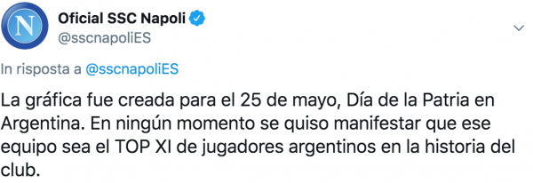 “La foto è stata creata per il 25 maggio, Festa della Patria in Argentina. In nessun modo si intendeva affermare che questa squadra fosse la top XI dei giocatori argentini nella storia del club”.
