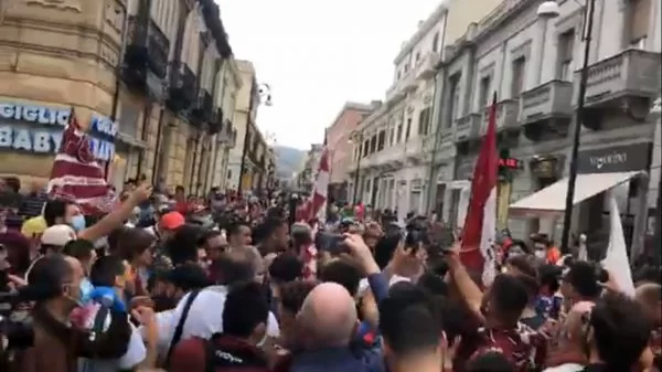 La Reggina è tornata in Serie B dopo ben 6 anni. La notizia però non è quest’ultima bensì i festeggiamenti avvenuti nelle piazze calabresi in cui si sono riuniti tantissimi tifosi. Inevitabili gli assembramenti incontrollati, anche in periodo post pandemia. È opportuno ricordare infatti che le manifestazioni sono consentite in forma statica e con il rispetto di una distanza di sicurezza e con i dispositivi di protezione personale.