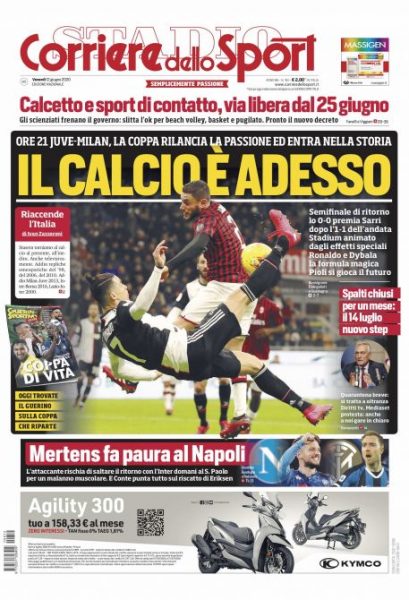 “Mertens fa paura al Napoli – si legge in taglio basso in prima pagina -. L’attaccante rischia di saltare il ritorno con l’Inter di domani al San Paolo per un problema muscolare“.