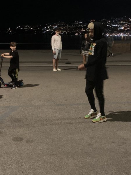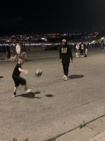 Sotto gli occhi increduli di questi ragazzi e di alcuni passanti, il francese si è mostrato divertito e disponibile nel passare un po’ di tempo con loro.