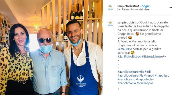 Sugli spalti di Fuorigrotta però era presente il presidente Aurelio De Laurentiis. Il patron azzurro, si è concesso una giornata di relax in un ristorante di Torre del Greco in provincia di Napoli. Ecco la foto postata sulla pagina Instagram del ristorante:
