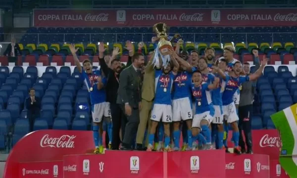 “Sono venuto a conoscenza di un’iniziativa bellissima, storia. Il Ministero dello sviluppo economico e Poste Italiane stanno proponendo un francobollo celebrativo per la Coppa Italia del Napoli.