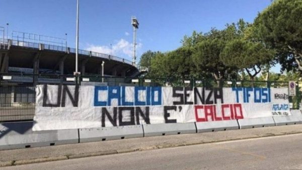 Una moltitudine di tifosi, infatti, è assembrata fuori lo stadio per intonare cori e protestare contro la ripresa del calcio. A puntualizzarlo è Sky Sport ma spuntano anche le foto di alcuni striscioni. Ce n’è uno di solidarietà ad Alex Zanardi e uno contro la ripresa della Serie A.
