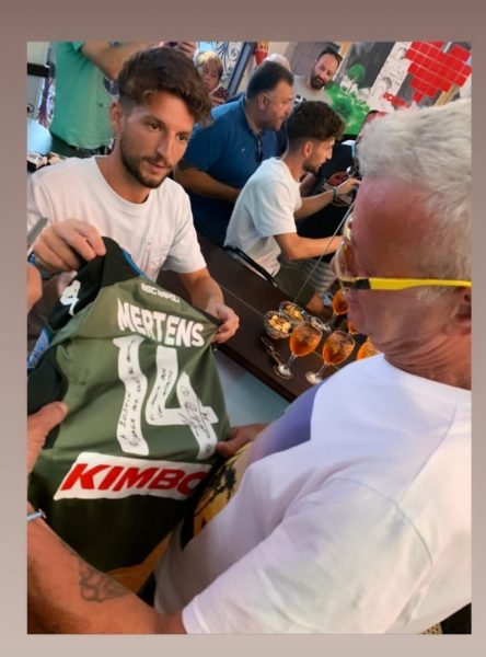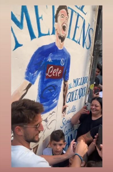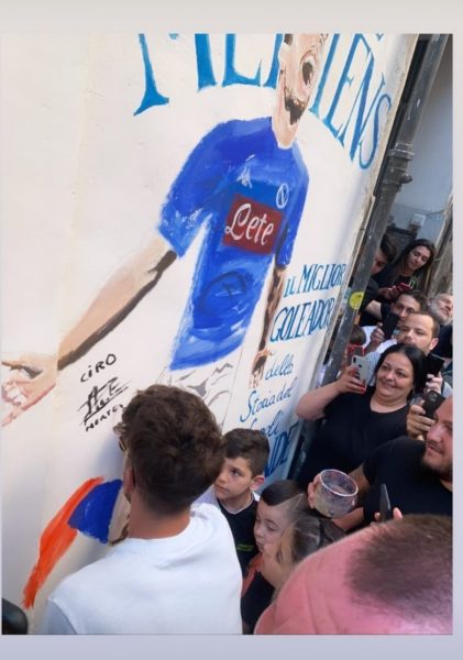 Oggi Mertens ha incontrato i proprietari del locale ed autori del murales che lo raffigura per firmalo. Ecco le foto dell’account Instagram di Bostik Spritz: